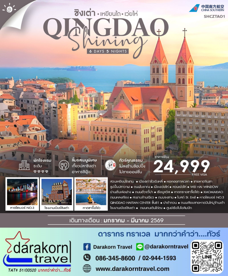 ทัวร์จีน ชิงเต่า SHINING เหยียนไถ เว่ยไห่ 6วัน 5คืน